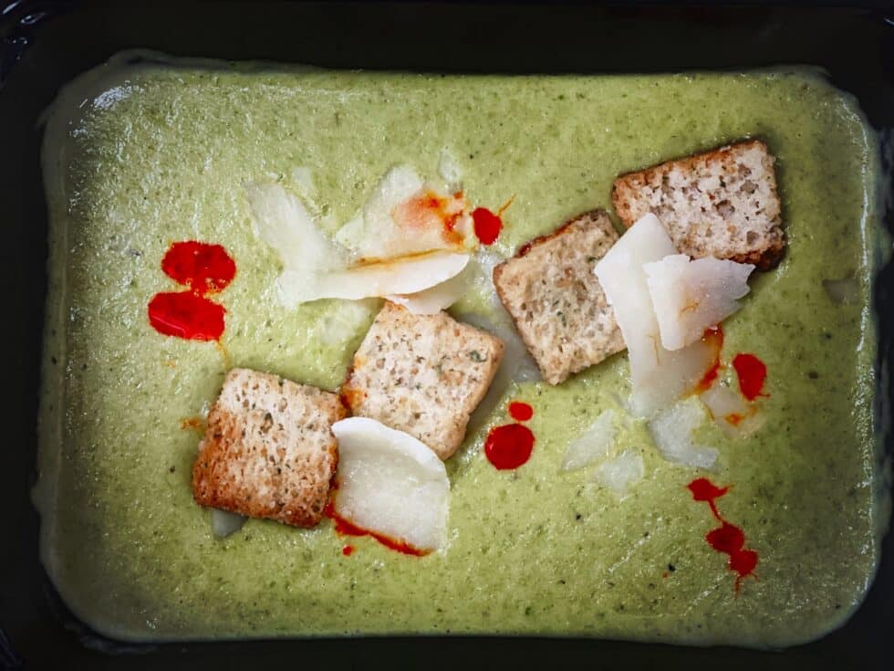 Asparagus, garlic, cream & parmesan cheese, croutons