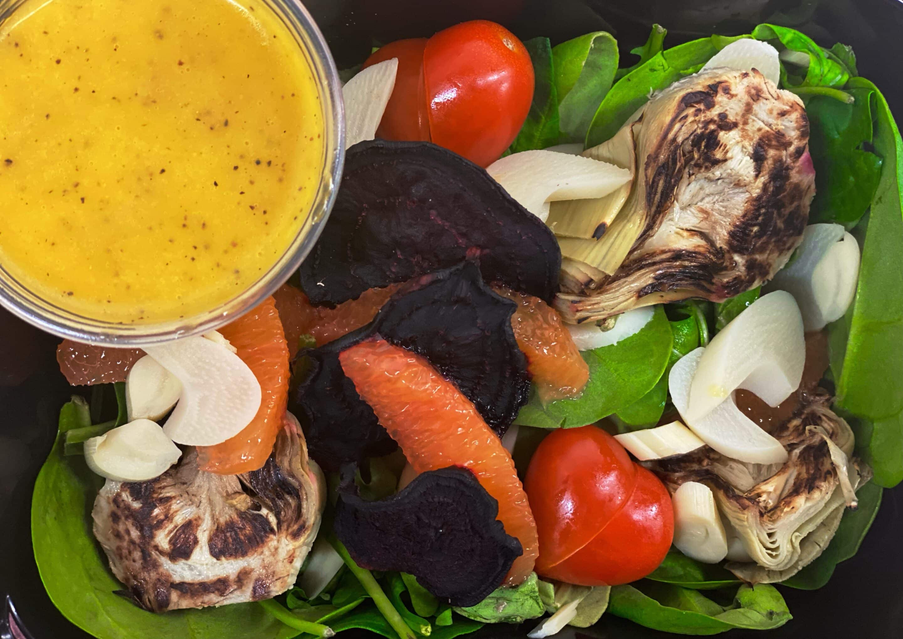 spinach, heart of palms, orange supreme, tomato and citrus vinaigrette