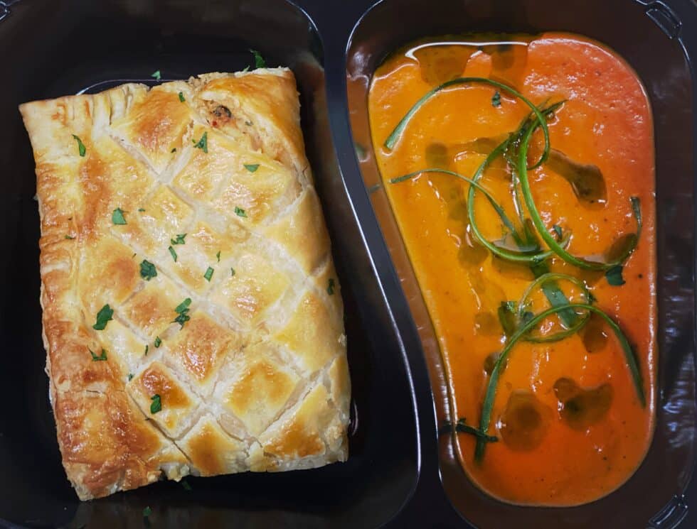 It’s a four-course dinner outlined above. All courses will be wrapped individually in heat-sealed containers, and reheating instructions will be provided.