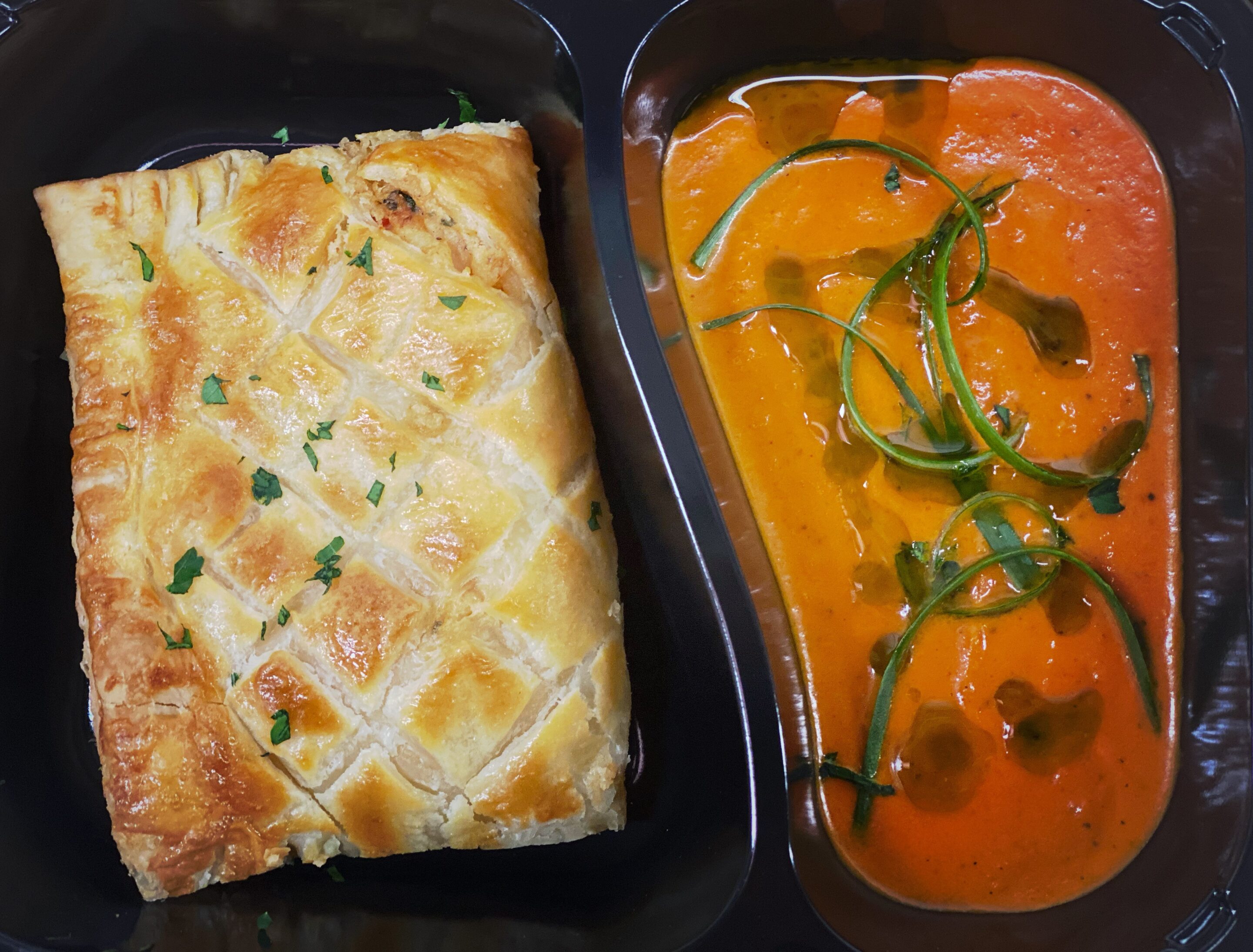Salmon, shrimp, mussel, clam, mascarpone cheese and panco wrapped in puff